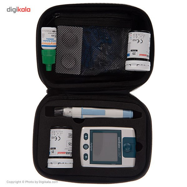 دستگاه تست قند خون «اینفوپیا» (Infopia) مدل «EasyGluco» دارای 365 حافظه، قابلیت تعیین شناسهی شخصی و حالت انجام تست و میانگینگیری از نتایج بوده و برای اندازهگیری قند خون تنها به 1.5 میکرو لیتر خون نیاز دارد. دستگاه دارای چهار حالت انجام تست است که خود شخص آنها را مشخص میکند. این حالتها شامل قبل از خوردن غذا، بعد از خوردن غذا، بعد از استفاده از دارو و بعد از ورزش میشوند. همچنین شخص میتواند قبل از اندازهگیری شناسه خود را وارد کند تا اطلاعات با شناسه خود او داخل حافظهی دستگاه ذخیره شود. حافظهی دستگاه قابلیت ذخیرهی نتایج تا 365 مورد را دارد. با فشردن و رها کردن کلید بالا و پایین دستگاه میتوان حالت انجام تست، تنظیمات زمان و تاریخ و واحد نمایش میزان قند خون و دما را تغییر داد. واحد نمایش قند خون را میتوان بین دو حالت میلیگرم بر دسی لیتر (mg/dl) و میلی مول بر لیتر (mmol/l) تغییر داد. قابلیت جالب این دستگاه محاسبه میانگین نتایج است که میتوان تعداد روزهای اندازهگیری 3 میانگین را از 7 تا 90 روز تعیین کرد. انرژی دستگاه از دو عدد باتری سکهای CR3032 تأمین میشود. این دستگاه دارای قابلیت Auto Coding است و کد نوار تست قند خون را به شکل اتوماتیک از روی نوار تشخیص میدهد؛ بنابراین احتیاجی به واردکردن کد به شکل دستی نیست. مقدار خون موردنیاز برای اندازهگیری قند خون توسط دستگاه 1.5 میکرو لیتر است. پس از قرار دادن قطرهی خون روی محل مشخصشدهی نوار، 9 ثانیه طول میکشد تا قند خون روی صفحه به نمایش در آید. اقلام همراه دستگاه شامل 50 عدد نوار تست، قلم سوزن زن، 50 عدد سوزن، محلول کنترل، دو عدد باتری سکهای، CD آموزشی و دفترچه راهنمای فارسی میشود. همهی اینها داخل یک کیف نگهداری محکم ارائه میشوند. توضیحات کامل نحوهی استفاده از دستگاه داخل دفترچه راهنمای فارسی آمده است. دستگاه EasyGluco دارای یک نرمافزار کنترل دیابت است که میتواند نتیجهی کلیهی تستها را در خود ذخیره کند. برای این منظور باید اطلاعات دستگاه را توسط کابل مخصوص (باید جداگانه تهیه شود) به کامپیوتر شخصی فرستاد. به طور خلاصه تست قند خون Infopia EasyGluco دارای 356 حافظهی ذخیرهسازی، قابلیت تعیین شناسهی شخصی، نمایش نتیجه در 9 ثانیه، تعیین حالت انجام تست، خواندن اتوماتیک کد نوار، قابلیت میانگینگیری از نتایج، اندازهگیری دمای محیط و اقلام همراه کامل بوده و برای اندازهگیری قند خون تنها به 1.5 میکرو لیتر خون نیاز دارد.